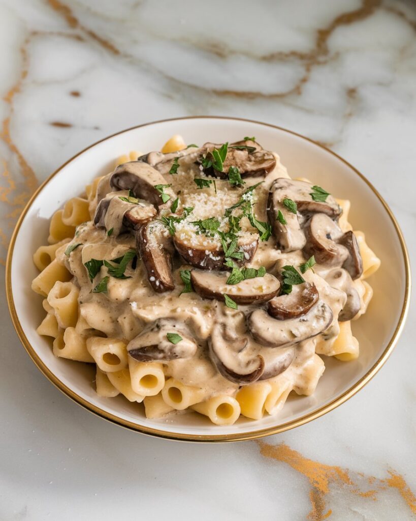 The roasted mushrooms give the sauce a meaty texture and umami flavor, while the creamy sauce and pasta make it the ultimate comfort food.