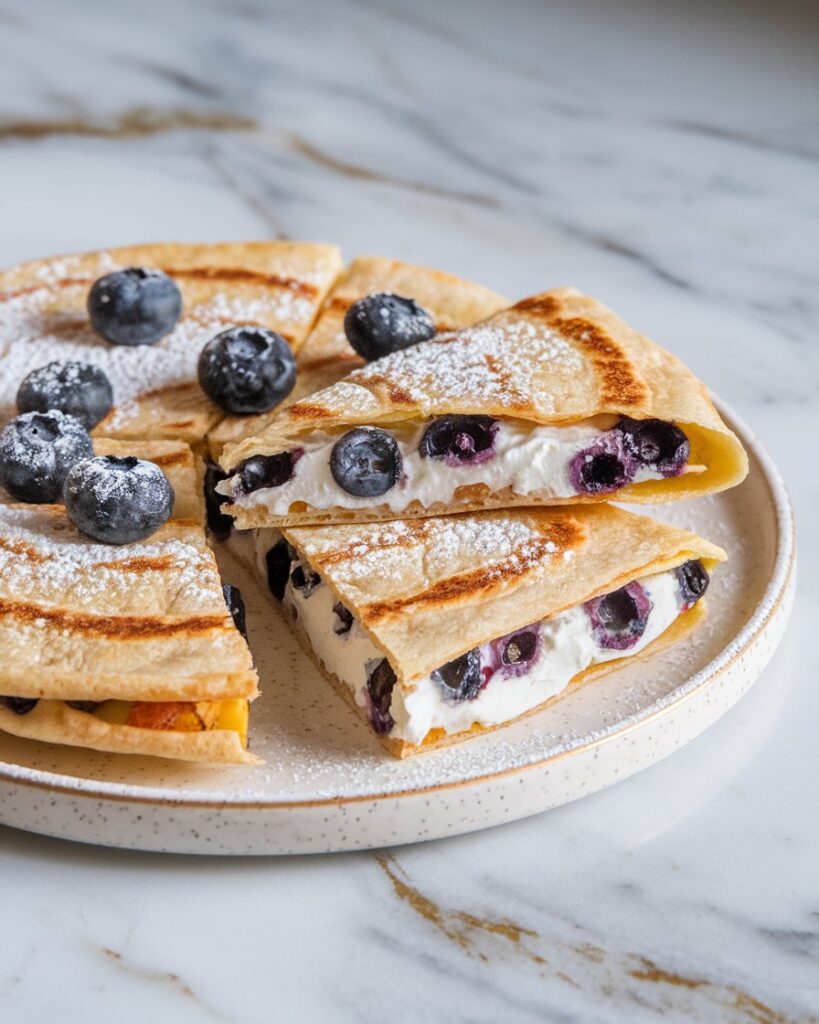 These Blueberry Breakfast Quesadillas bridge the gap between savory and sweet, offering a delightful alternative to standard morning fare. The contrast of crispy tortilla with warm, juicy blueberries and melty cheese creates something truly special, while the hint of cinnamon adds that perfect touch of warmth. They’re ideal for those mornings when cereal just won’t cut it but you still need something quick—ready in under 10 minutes from start to finish. Whether for a weekend brunch or weekday treat, these quesadillas transform ordinary ingredients into something that feels just a little bit magical, proving that breakfast can be both simple and extraordinary.