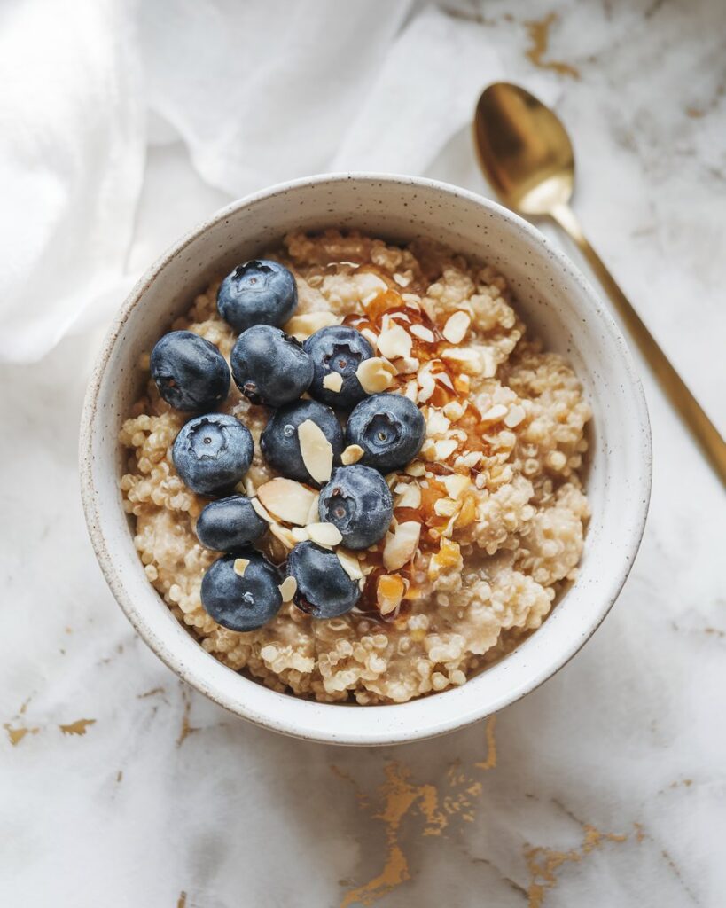 Quinoa is a complete plant-based protein, making this dish extra filling. Combined with milk, honey, and blueberries, it provides a balance of protein, fiber, antioxidants, and natural sweetness.