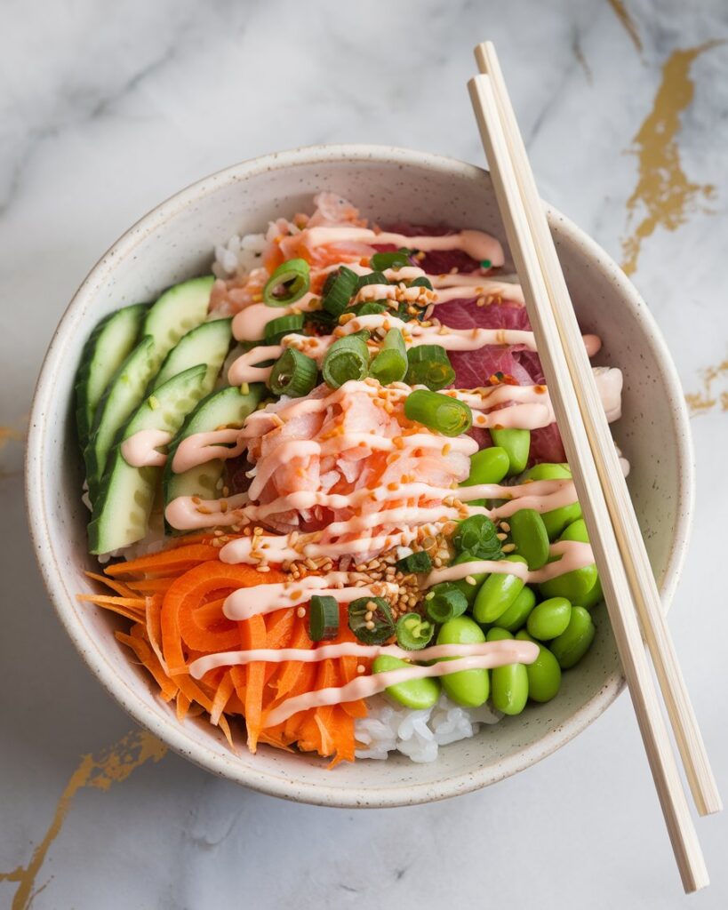 You don’t need sushi-making skills or special equipment—just layer everything in a bowl, drizzle with sauce, and enjoy. It’s also endlessly customizable. Swap out proteins, add more veggies, or drizzle with your favorite sauces.