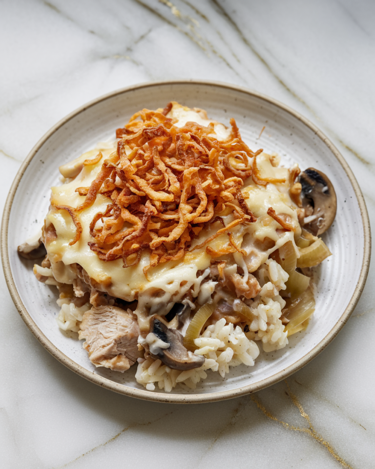 Melding savory onion flavors with juicy chicken in one pan, this French Onion Chicken Casserole might become your family's new weeknight obsession.