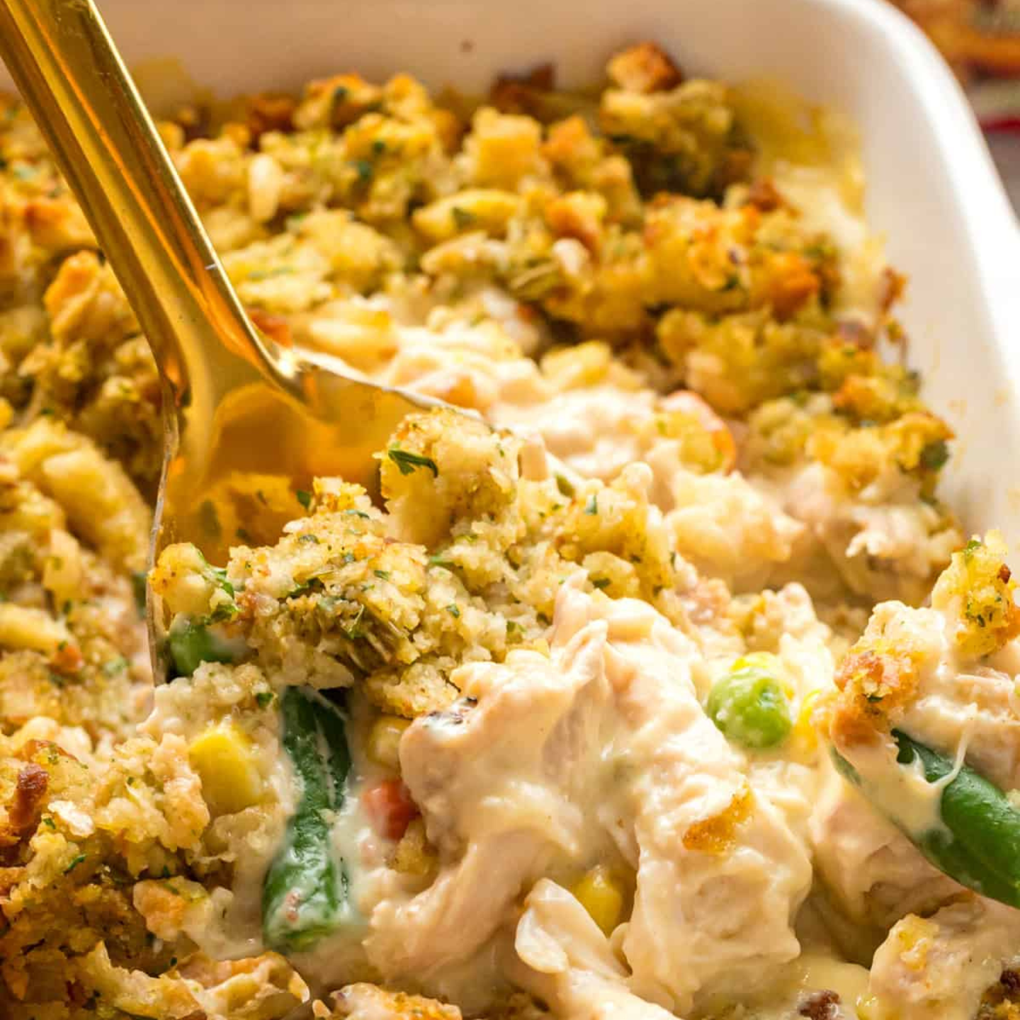 I can’t get enough of how the buttery stuffing creates a perfect crunchy topping while the creamy chicken mixture bubbles underneath. Can you imagine anything more satisfying? The best part? You can customize it with veggies or extra seasonings to make it your own. Perfect for busy weeknights or Sunday dinner with the family.