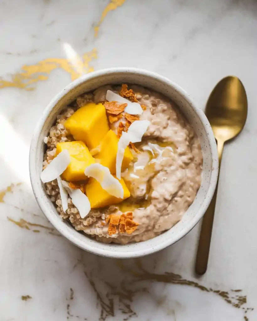 It’s creamy, lightly sweet, and made with protein‑rich quinoa simmered in coconut milk, then topped with juicy mango for a fresh, fruity twist. This recipe became a favorite in our home because it’s simple, wholesome, and full of flavor.