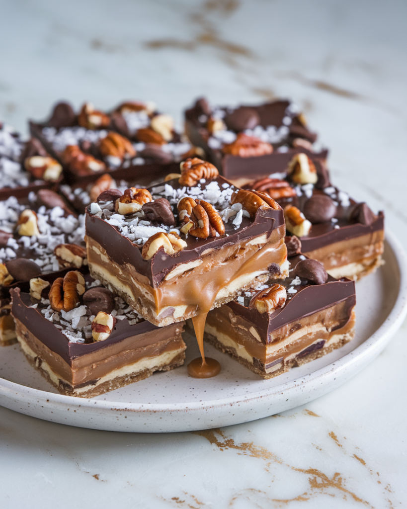 To refresh refrigerated bars, microwave for 10-15 seconds—just enough to slightly warm the caramel center without melting the chocolate completely. The perfect balance of gooey and structured is what makes these bars so irresistible!