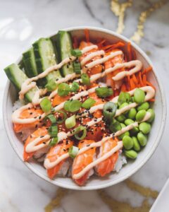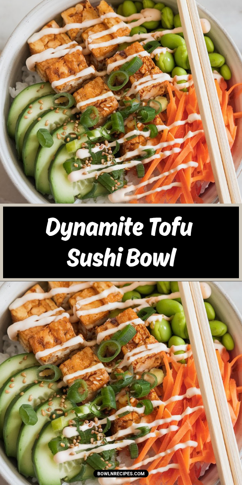 It combines crispy tofu, sushi rice, fresh veggies, creamy avocado, and a drizzle of spicy “dynamite” sauce for a bold, flavorful dish that comes together easily. No rolling required—just toss everything into a bowl and enjoy!