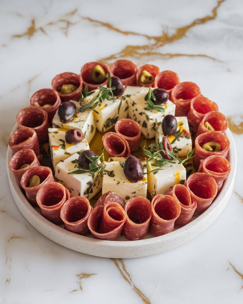 This marinated cheese and salami appetizer brings together the sharpness of cheddar, the mild heat of pepper jack, and the briny punch of pickles in perfect harmony. What makes it special is its versatility—dress it up for holiday gatherings or keep it casual for weekend get-togethers.