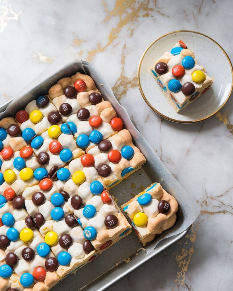 M&M’s Marshmallow Dream Bars (No-Bake)