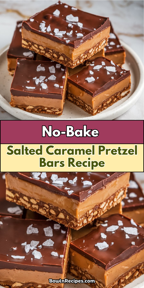 There’s something quietly perfect about the contrast here — crunchy, salty pretzels, gooey caramel, and a clean snap of chocolate — that makes these bars both comforting and a little bit addictive. They’re forgiving to make (no oven, no drama), so they’re ideal for busy afternoons, last-minute potlucks, or when a sweet tooth needs a quick, crowd-pleasing fix. Keep them chilled for a tidy bite or let them warm slightly for melty caramel bliss. Simple, satisfying, and reliably good — a small sweet that behaves like a treat.