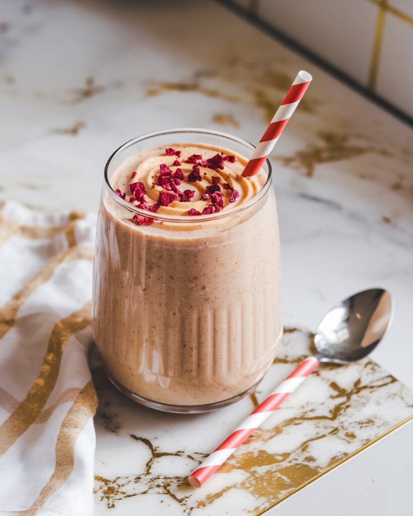 This smoothie is a protein powerhouse, thanks to Greek yogurt and peanut butter. It’s full of fiber and antioxidants from the berries and banana, and it gives you lasting energy without a crash.