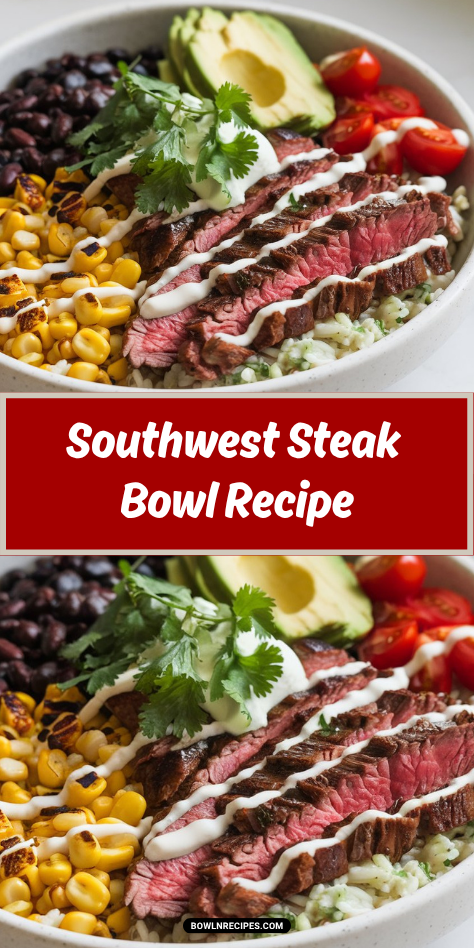 This Southwest Steak Bowl is bold, colorful, and satisfying—everything you love in a burrito, just without the wrap. Tender steak, charred corn, black beans, fresh veggies, and a zesty lime crema come together in one protein-packed bowl.