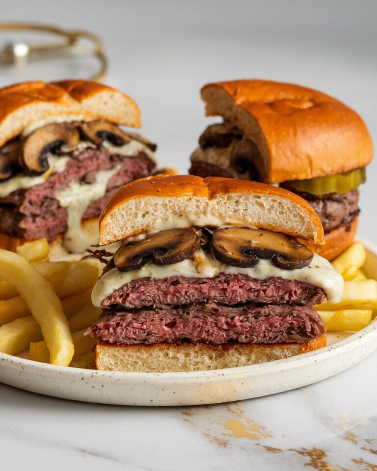 Mushroom Swiss smash burgers deliver crispy beef patties with whiskey-glazed mushrooms and melty cheese that will revolutionize your homemade burger experience.