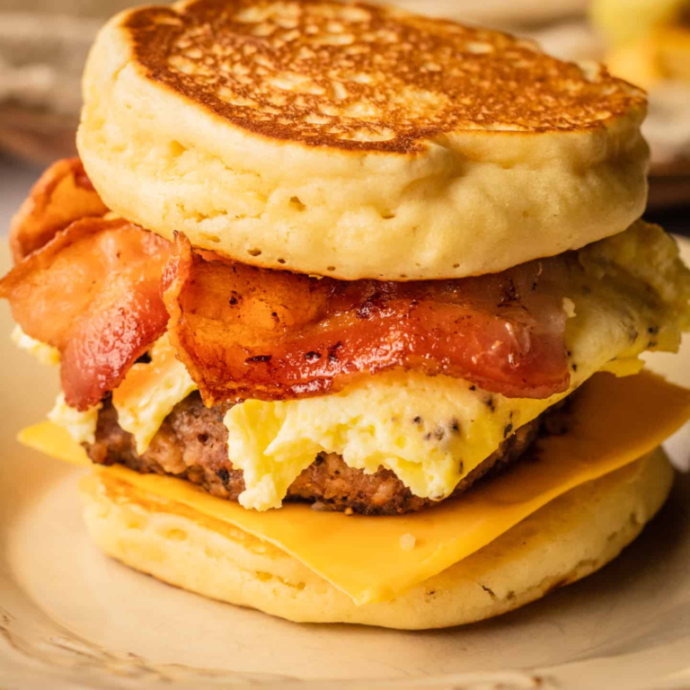 Fluffy maple-infused pancakes sandwich your favorite breakfast fixings in this copycat recipe that'll make you forget about the drive-thru.